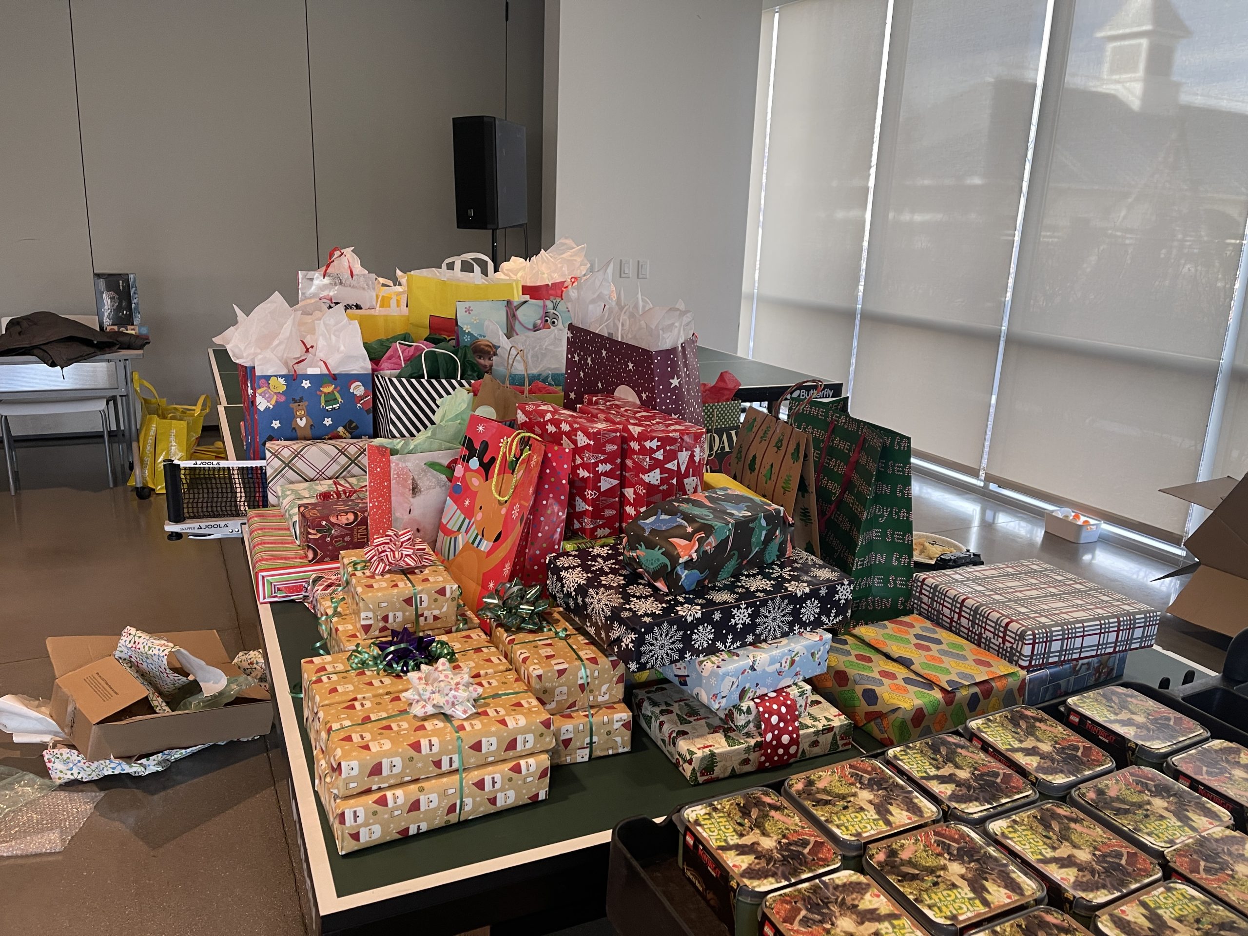 The highlight of the event is the annual Dirty Brickster gift exchange, modeled after a traditional white elephant game. Each of the 99 participants – including members, guests, and children each brought a LEGO-related gift with a value of around $20-$40. Each person could choose to open a new gift from the pile or steal, and there were a few highly sought-after items. Notable thefts included 3D printed big parts, One Piece ships, Minecraft, Classic Space babies, Friends holiday adventures, and various gifts with purchases from the year.